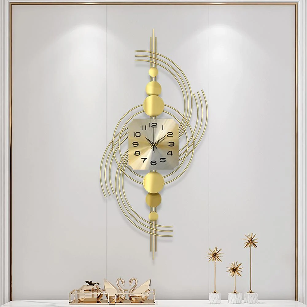 The wall clock comes with a geometric frame that displays clean lines and a good sense of balance, the whole design displays the beauty of simplicity. Crafted from iron and hand-painted in gold color, the wall clock provides a strong metal texture and works as high-end home decor. The slim metal pointers can run accurately and steadily and combines with legible Arabic numbers. When you use this elegant art piece to decorate your wall, it can also inform you of the time. It is practical and highly decorative wall decor.