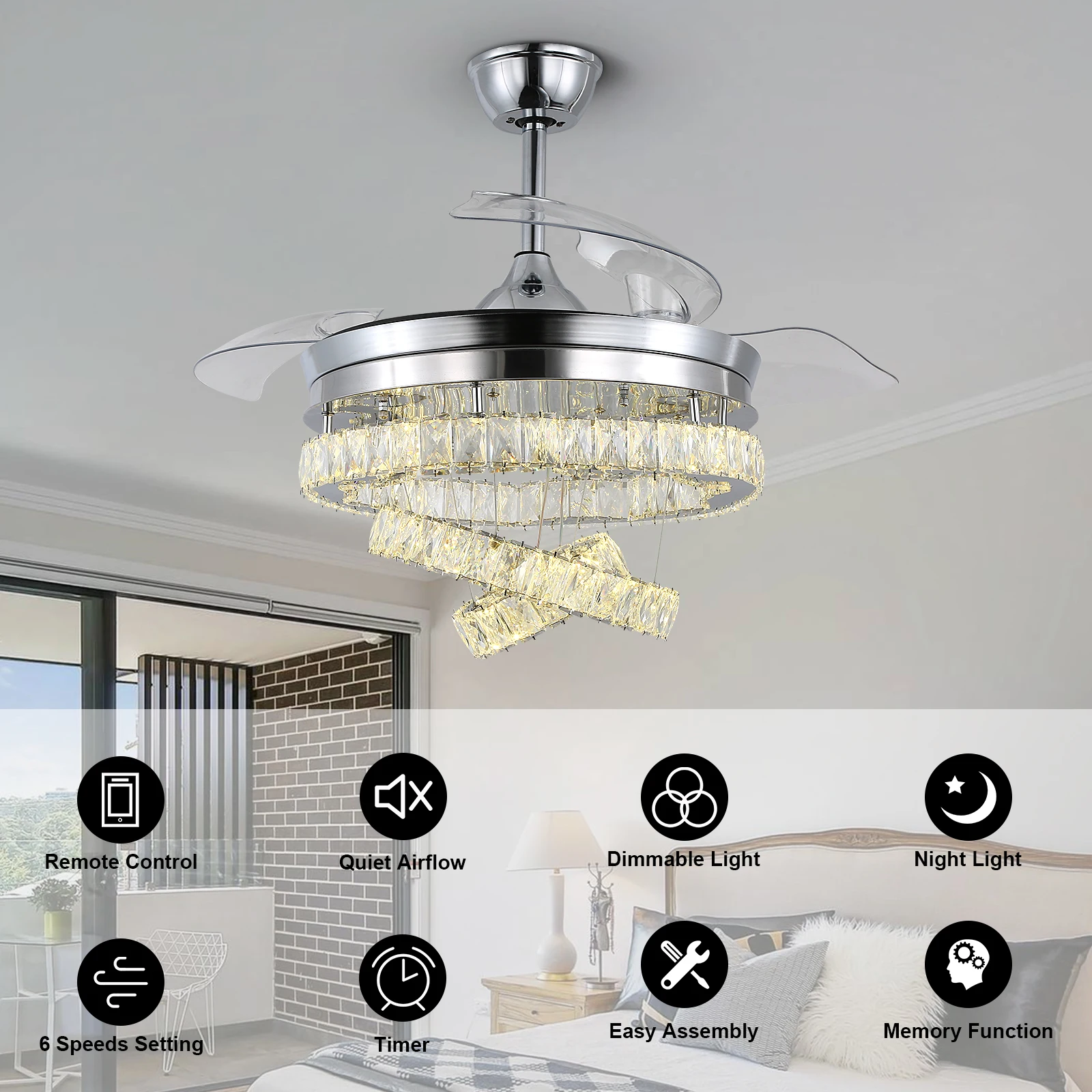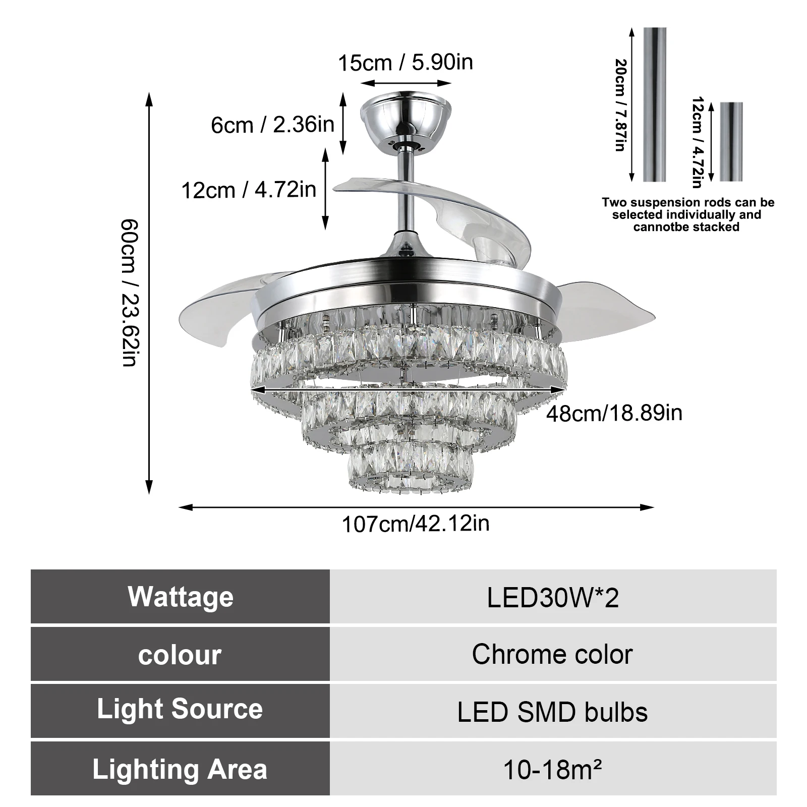 Create an ambiance of sophistication with our Reversible Intelligent Ceiling Fan. This modern marvel seamlessly blends functionality and beauty, featuring a sleek design that elevates any space. The fan comes with integrated LED lighting, transforming it into a captivating chandelier that adds a touch of glamour to your room.