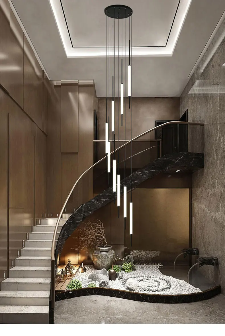 With its adjustable cord length, the Leonardo Chandelier can be customized to suit your staircase’s specific height and architectural style. Whether you have a grand spiral staircase or a more modest flight of steps, this chandelier is designed to effortlessly complement your space, creating a harmonious blend of form and function.