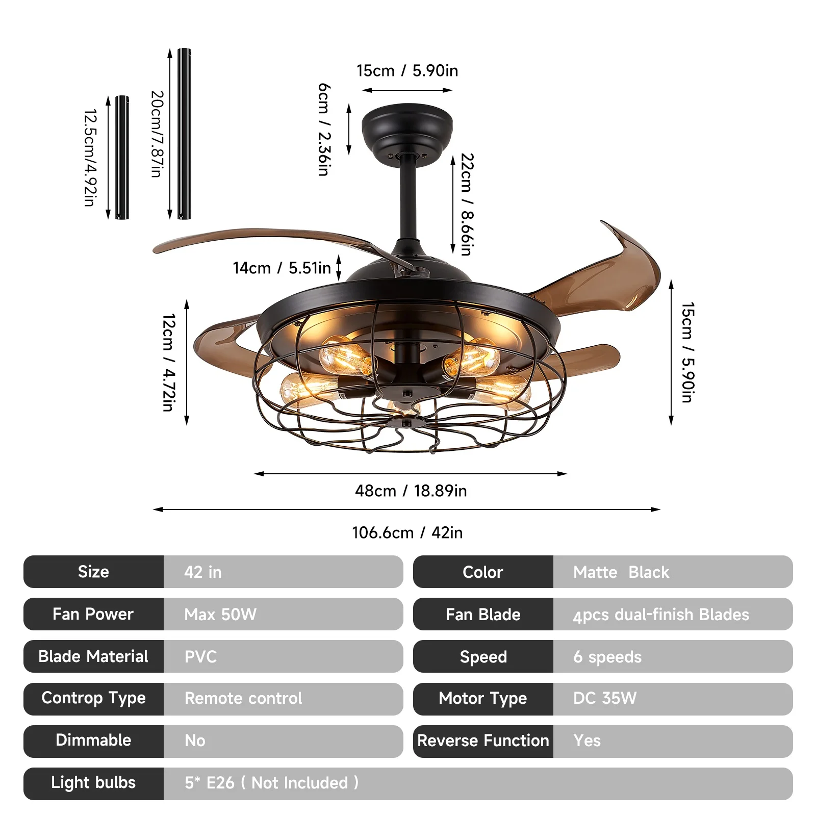 Enhance your living space with the timeless charm of our Retro Style Farmhouse Black Ceiling Fan. Crafted from high-quality materials, this fan is not only sturdy and durable but also effortlessly blends with various home styles. The vintage chandelier design adds a touch of sophistication to any room, making it a perfect addition to dining rooms, living rooms, kitchens, hallways, cafes, basements, bars, clubs, restaurants, offices, and libraries.
