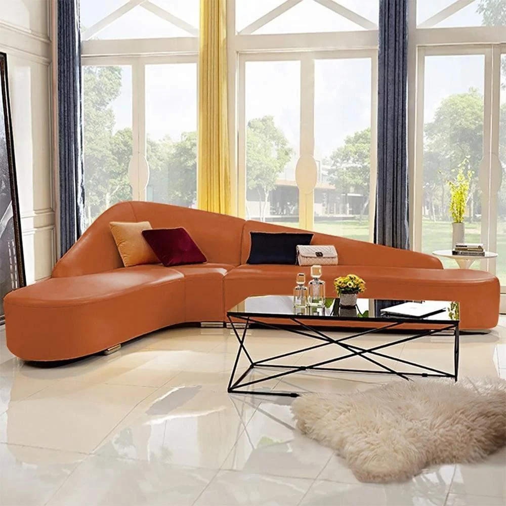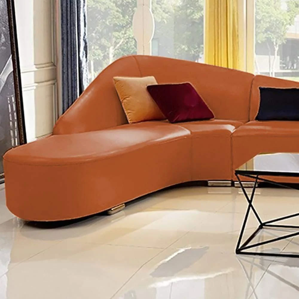 A creative twist on contemporary style, this sectional sofa outfits your seating group in a sophisticated style. Featuring a unique L-shaped design, it offers ample space for lounging and sitting. Upholstered in a high-performance faux leather for a smooth, gentle touch, it boasts foam fillers to provide extreme softness for sitting. The crescent backrest adds soft yet steady support when you are watching TV or reading books. What’s more, its arresting orange hue will be a light spot in anywhere and create a vibrant aura. Enjoy the grace and glamour with this delightful sofa!